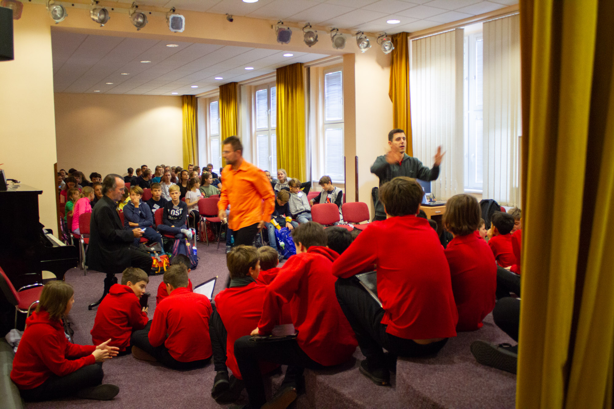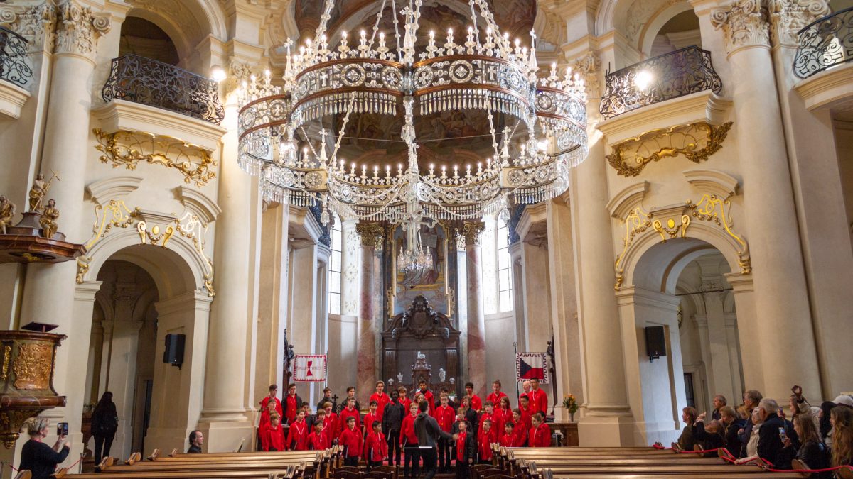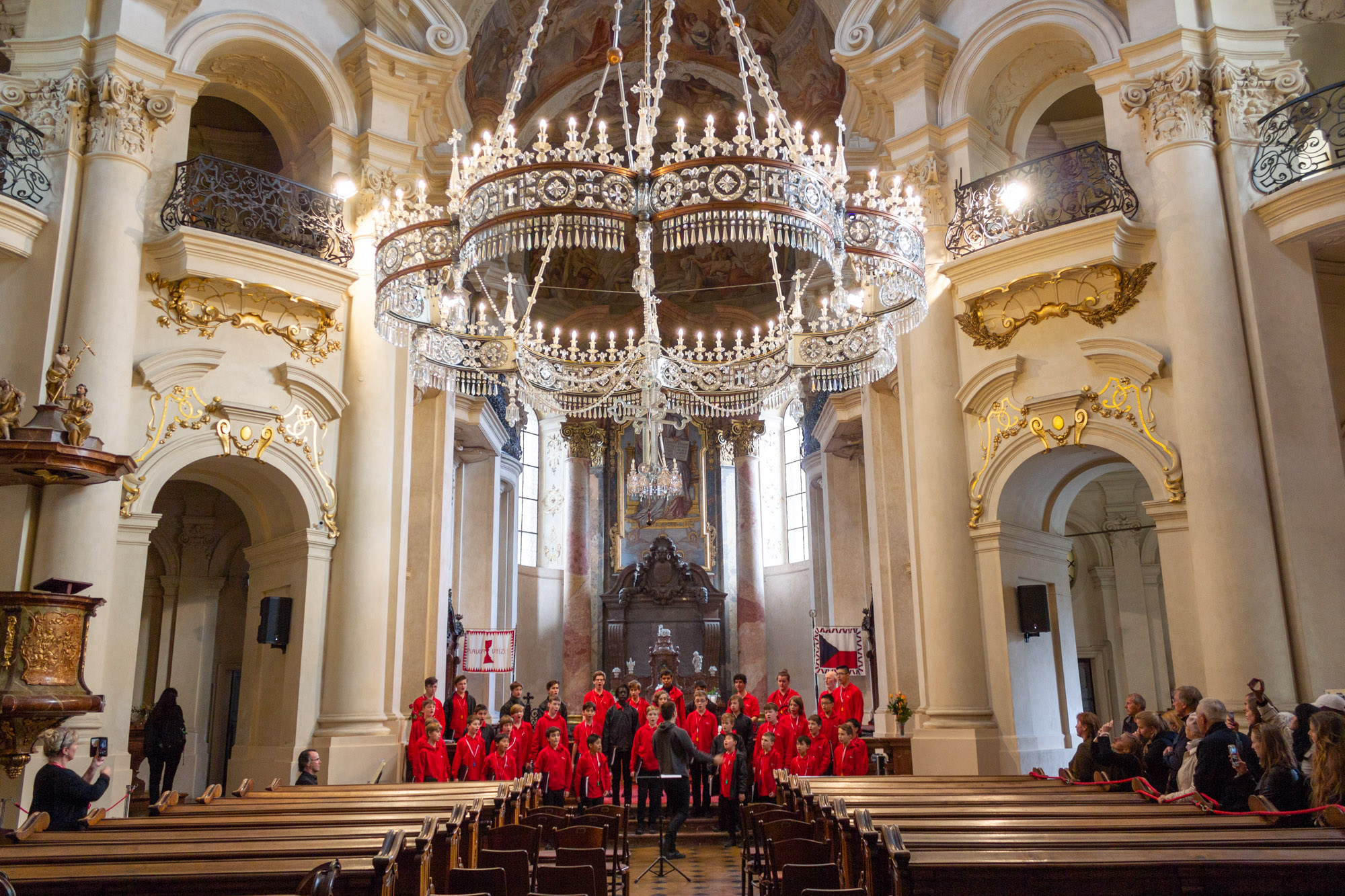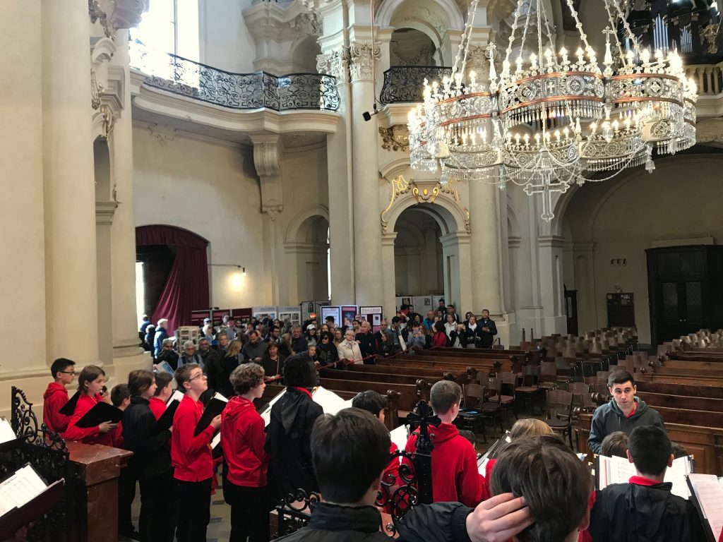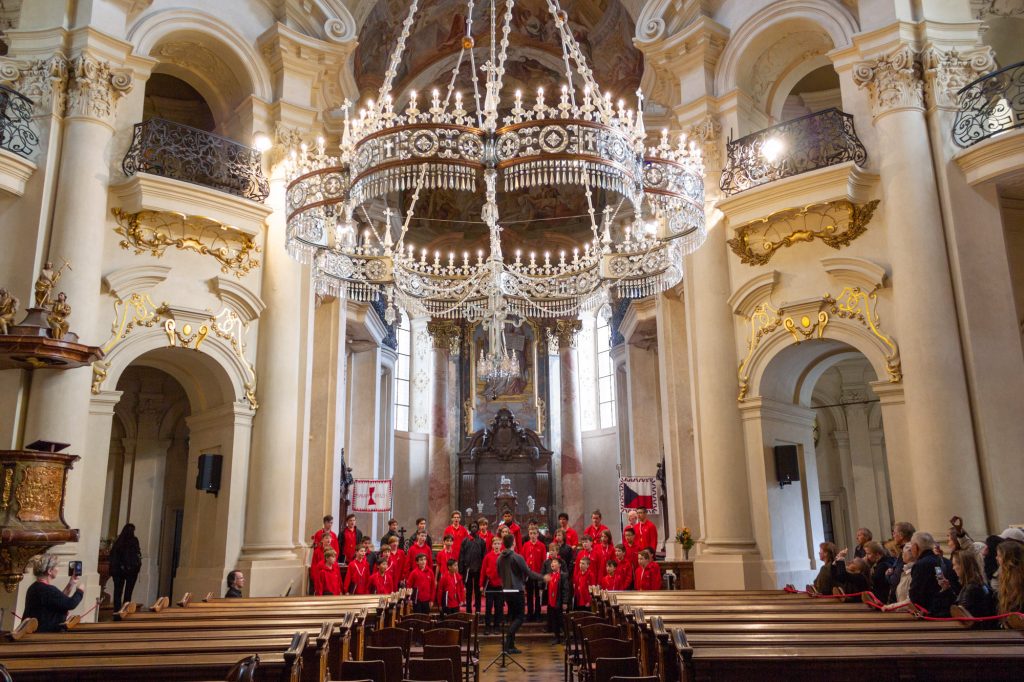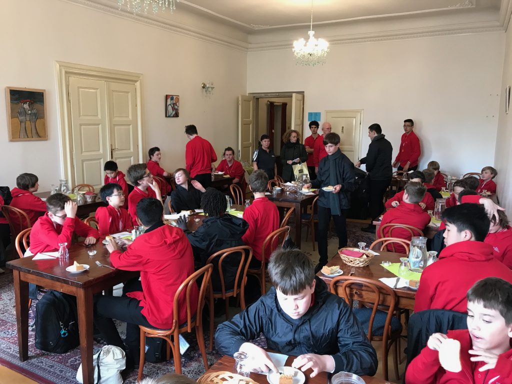 After an early morning the choir went to the Nad Kavalírkou Grammar School to and met the Besharmonie Choir for a workshop and shared performances. The Besharmonie choir is mostly comprised of students from the Jaroslava Heyrovského and Nad Kavalírkou schools (or ‘Gymnázia’ as they are called in Czech). It was an enjoyable time for both choirs as we all got to share songs with each other as well as our culture. The Besharmonie choir sang songs in Czech as well as in English so we could understand, which was good. Unfortunately we did not have any Czech songs for them, but we did sing an Australian classic, Waltzing Matilda. A memorable experience for both choirs was the Besharmonie choir teaching us a Czech song – although our pronunciation was not great! It was a nice surprise when the conductor of the Besharmonie choir attended our concert in St Nicholas’s Church with some of his students later in the day.